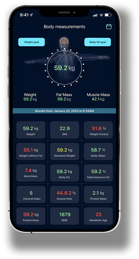 The Dara 2.0 uses multi-frequency analysis to deliver even more precise body composition metrics, including visceral fat, so you know what you are made of and can focus your health efforts.